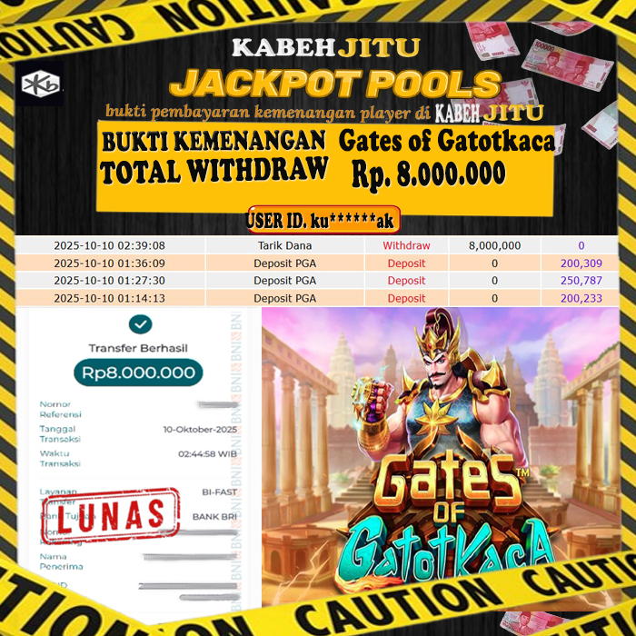 Selamat Kepada Member HTTPS://KABEHJITU.COM GATES OF GATOT KACA User id KU*********