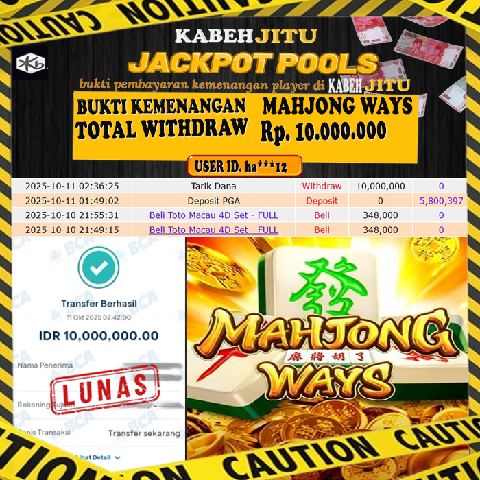 HTTPS://KABEHJITU.COM JACKPOT MAHJONG WAYS Rp. 10.000.000,- LUNAS