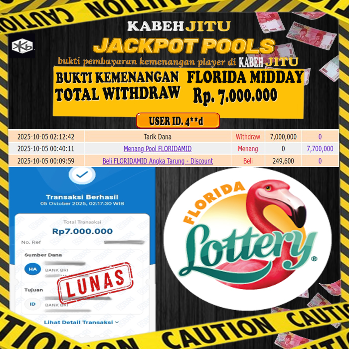 HTTPS://KABEHJITU.COM JACKPOT FLORIDA MIDDAY Rp. 7.000.000,- LUNAS