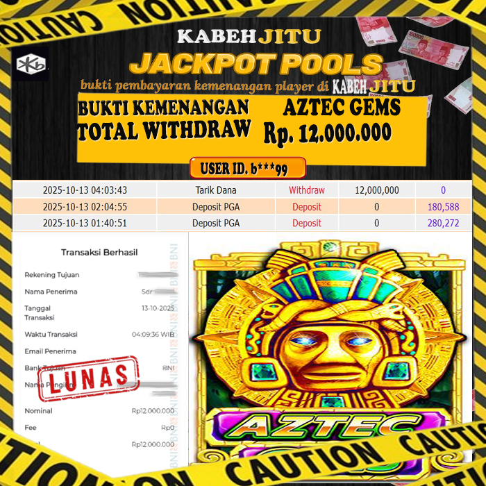 Selamat Kepada Member HTTPS://KABEHJITU.COM AZTEC GEMS User id BI****