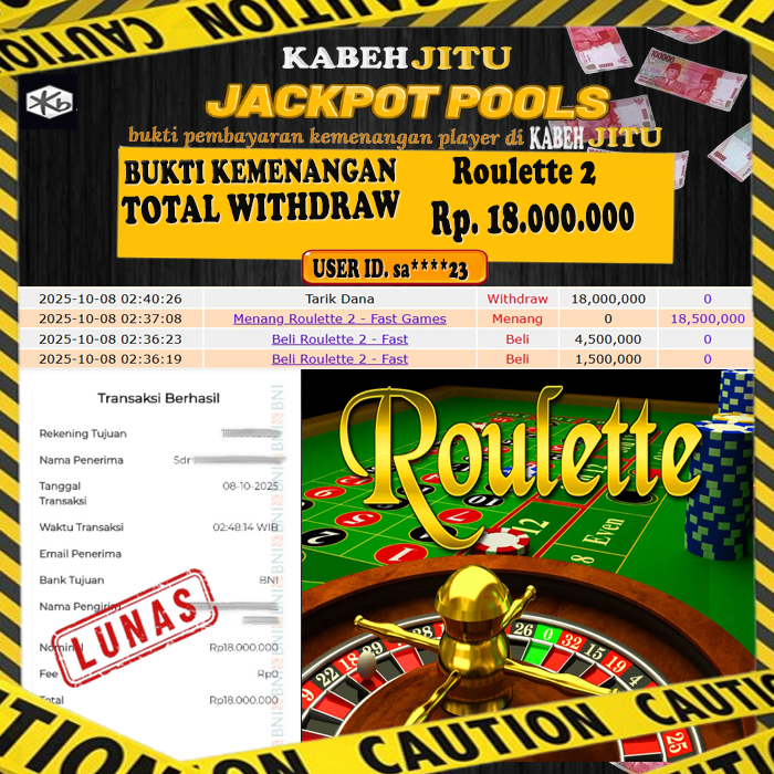 HTTPS://KABEHJITU.COM JACKPOT ROULETTE 2 FAST GAMES Rp. 18.000.000,- LUNAS