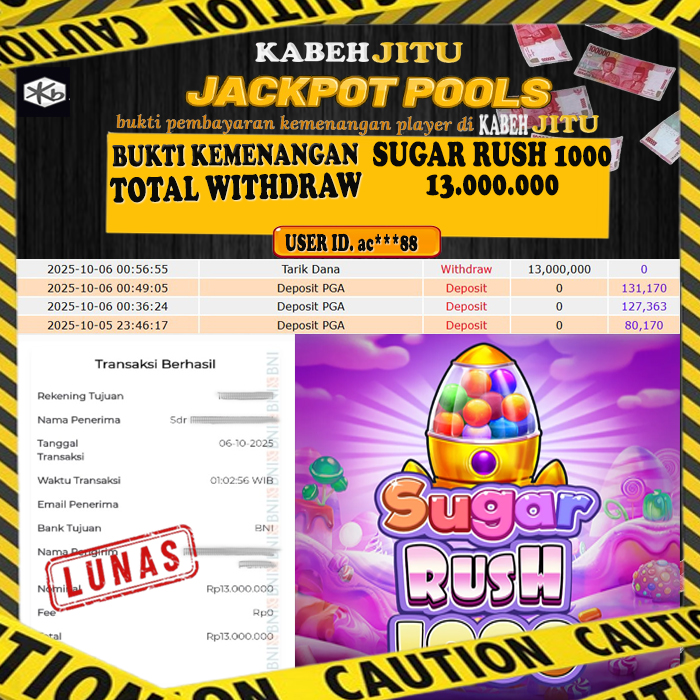 HTTPS://KABEHJITU.COM JACKPOT SUGAR RUSH 1000 Rp. 13.000.000,- LUNAS